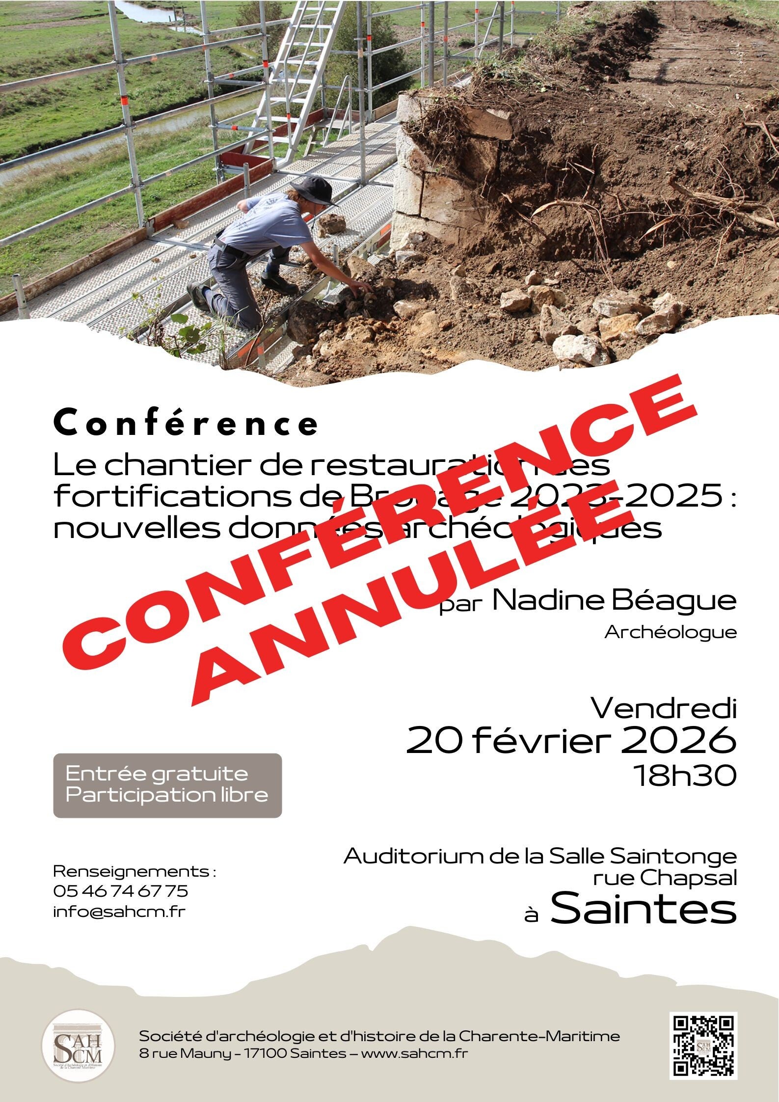 Conférence proposée par la Société d’archéologie et d’histoire de la Charente-Maritime.